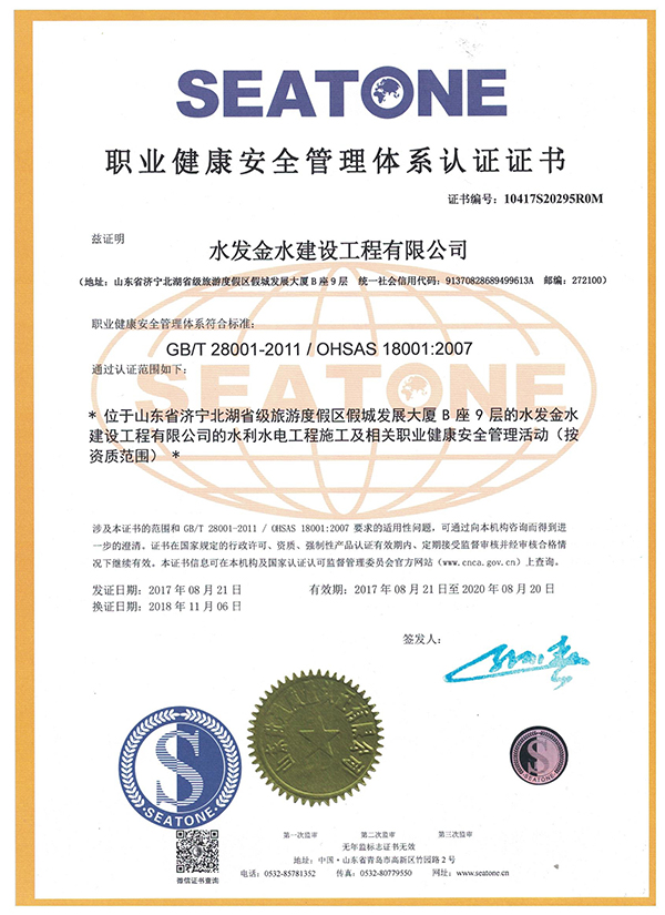 水發(fā)金水建設(shè)工程有限公司 三體證書-職業(yè)