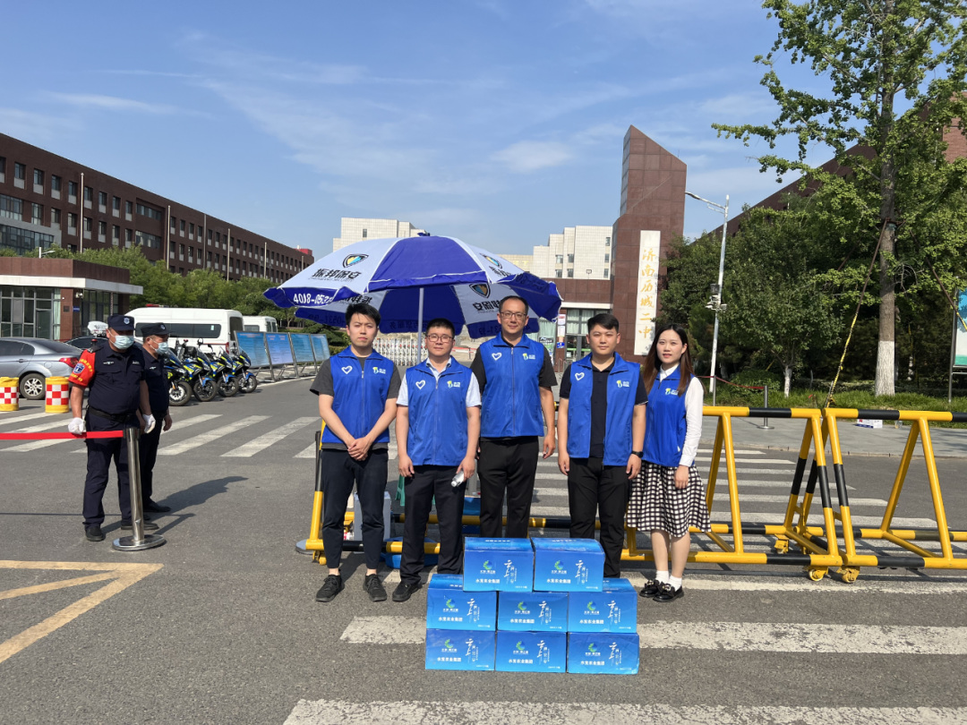 盛夏的濟(jì)南氣溫高達(dá)36度,烈日炎炎之下,水發(fā)農(nóng)業(yè)“藍(lán)馬甲”志愿者穿梭在“陪考大軍”之間,給考生及陪考家長(zhǎng)遞去產(chǎn)自阿爾山的山泉水,給考生加油鼓勁,叮囑他們要注意防暑降溫;“藍(lán)馬甲”還向周邊執(zhí)勤的交警、考點(diǎn)門口的工作人員送上水和防暑降溫用品,感謝他們?cè)诟髯缘膷徫簧喜晃房崾睿穆毐M責(zé)。